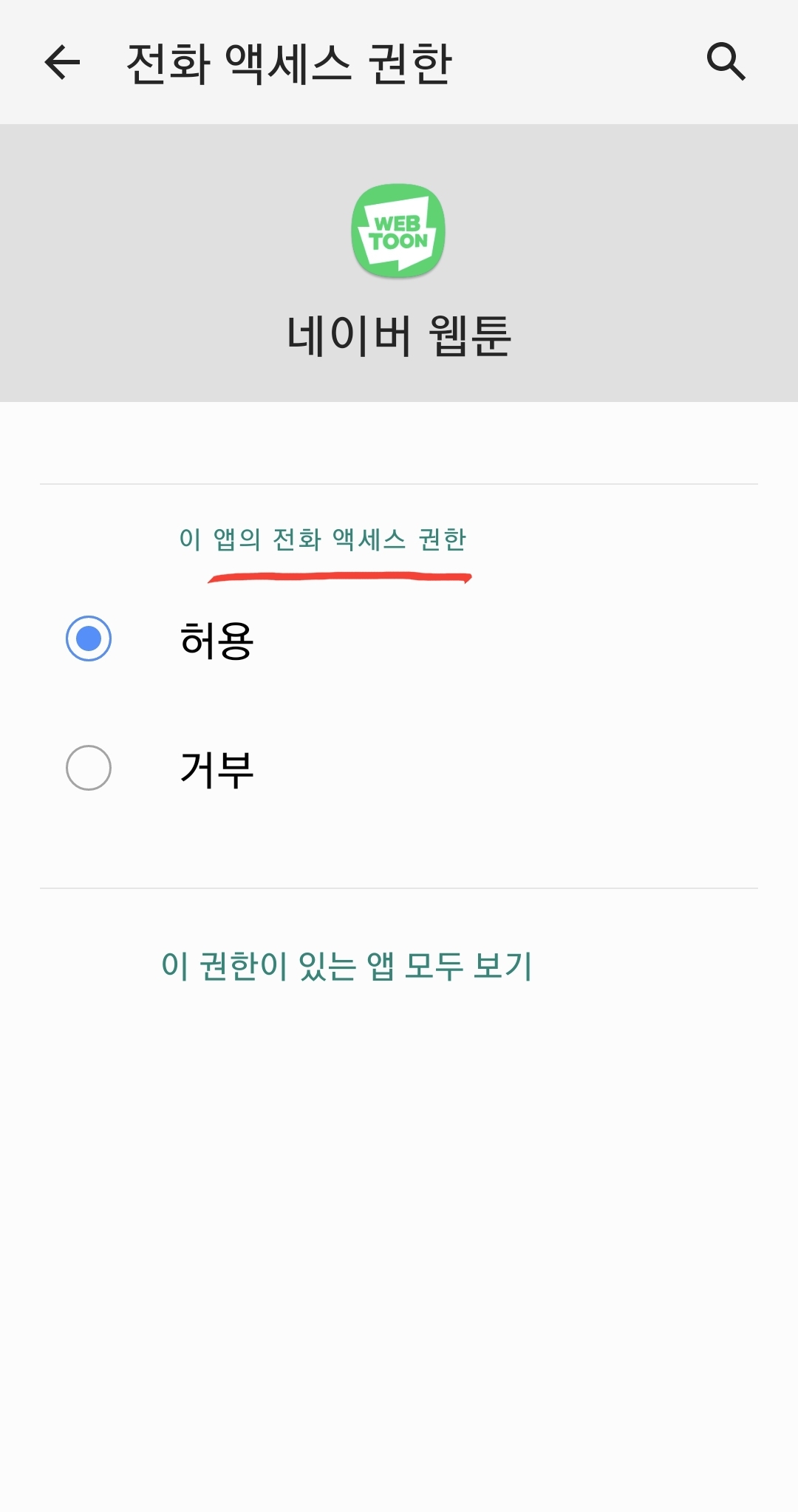 많은 어플 중에 권한을 부여해야하는 애플리케이션을 선택해 주십시오.