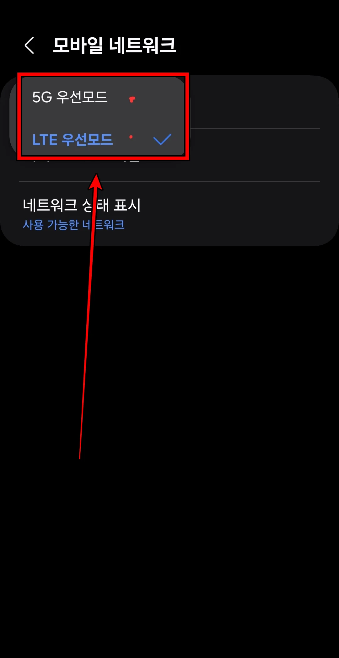 - LTE 우선 모드 5G 우선 모드 설정
